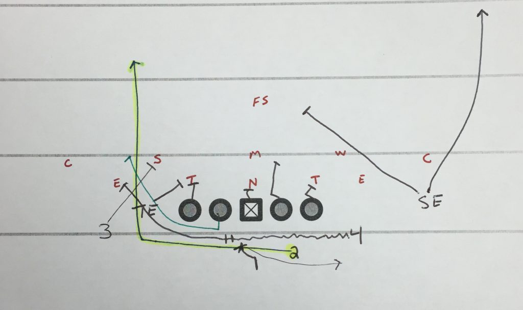 SE: Work to block middle safety. You can also have him run off the cornerback.